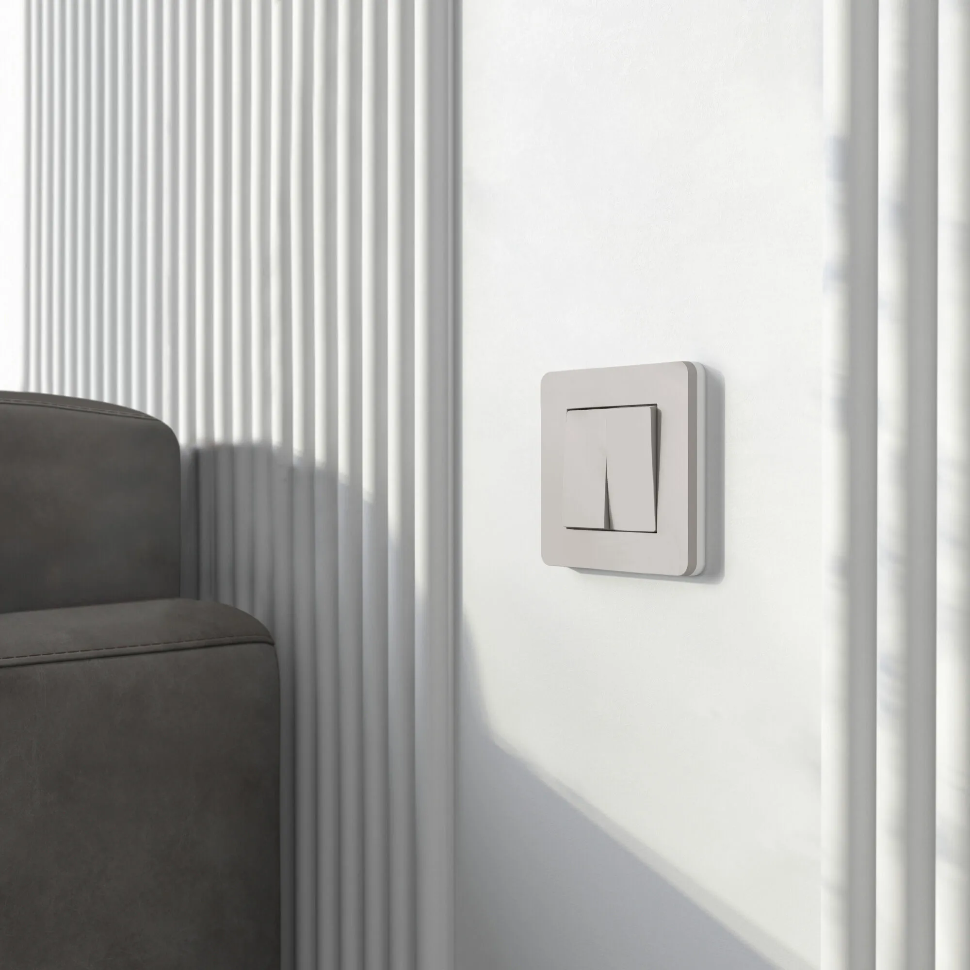 Создайте утончённый, технологичный и визуально сбалансированный интерьер с 1-постовой рамкой Split дымчатый/белый от немецкого бренда Werkel. Эта рамка объединяет лаконичный двухцветный дизайн, бархатистое soft-touch покрытие и премиальное качество материалов, становясь идеальным завершающим штрихом для любой электроустановки.